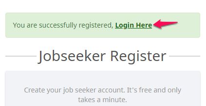 5. अब आपको Successful registration का एक मैसेज प्राप्त होगा| यहाँ “Login Here” के बटन पर क्लिक करके अपना अकाउंट login करें